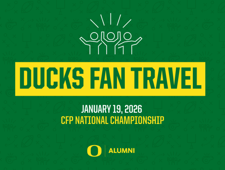The University of Oregon Alumni Association invites you to Miami as the Ducks head to the National Championship! Packages include deluxe hotel accommodations, official pre-game event, tour welcome event, and more!